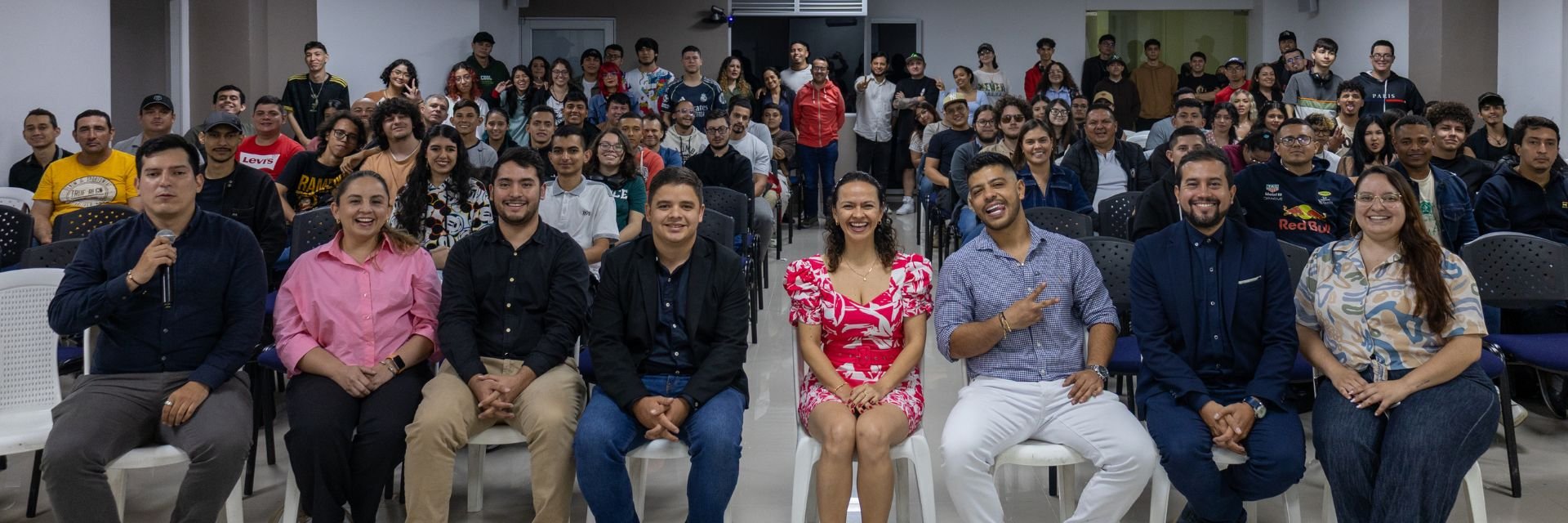 Durante el encuentro, moderado por Leonardo Pinto de Analítica Académica UDES, se presentaron cuatro graduados destacados: Sebastián Calderón Navarro, Sergio Galvis Jaime, Juan Sebastián Pinto Lozada y Diego Felipe Serrano Avellaneda.
