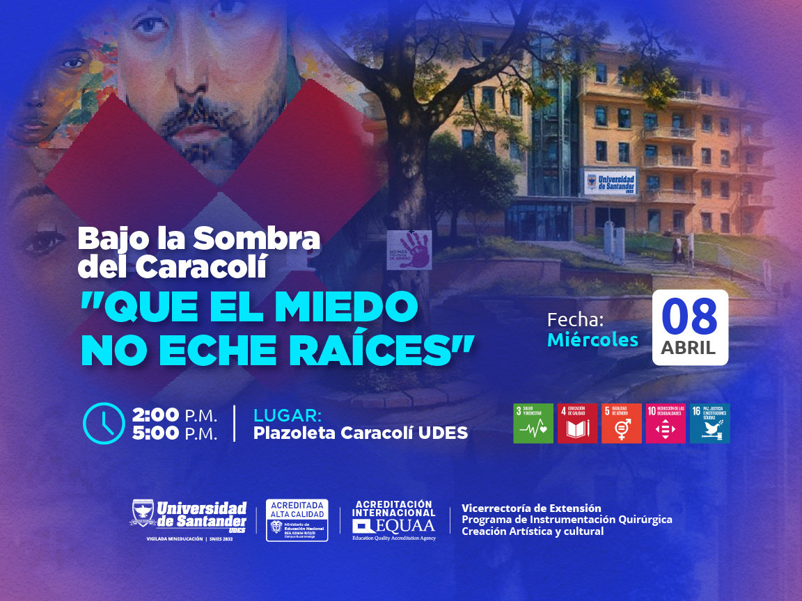 La Vicerrectoría de Extensión, el programa de Instrumentación Quirúrgica y Creación Artística y Cultural de la Universidad de Santander (UDES) te invitan a "Bajo la Sombra del Caracolí: Que el miedo no eche raíces".