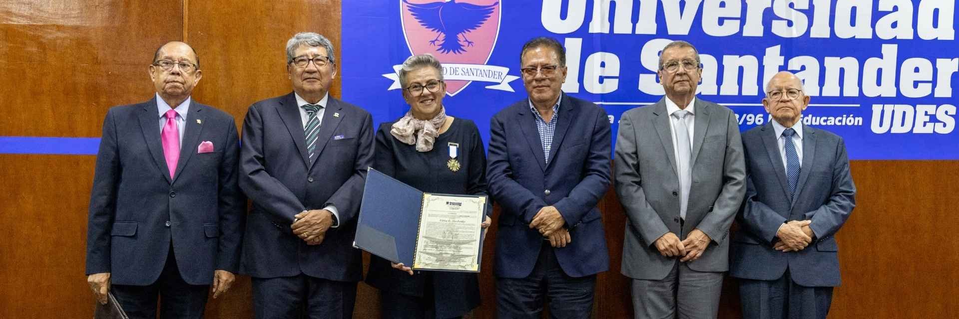 En ese senitdo, la Universidad de Santander (UDES) le rindió un sentido homenaje en el marco de la Cátedra Institucional Rafael Serrano Sarmiento. La destacada científica recibió la Condecoración de Comuneros, uno de los más altos reconocimientos de la institución por su legado en la investigación dela flora en Santander y sus hallazgos que han sido de provecho para la región.